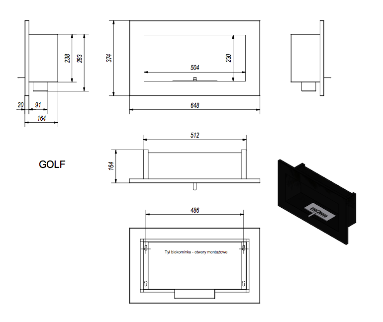 Biosemineul GOLF cu rama inox si negru, nu necesita cos de fum.