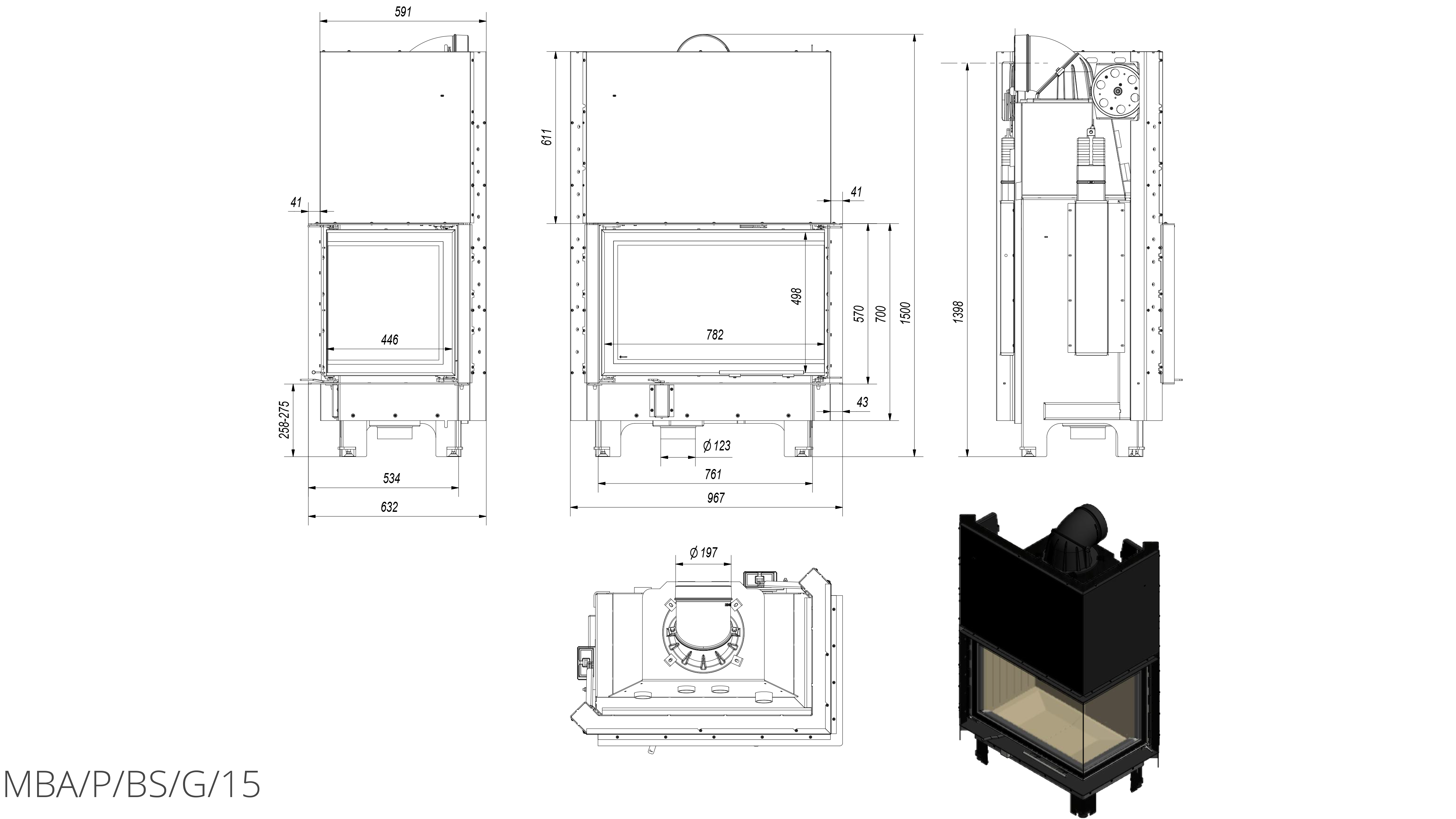 Focar de otel cu grosimea peretelui de 4 mm, captusit cu samota, echipat cu geam ceramic refractar 800°C.