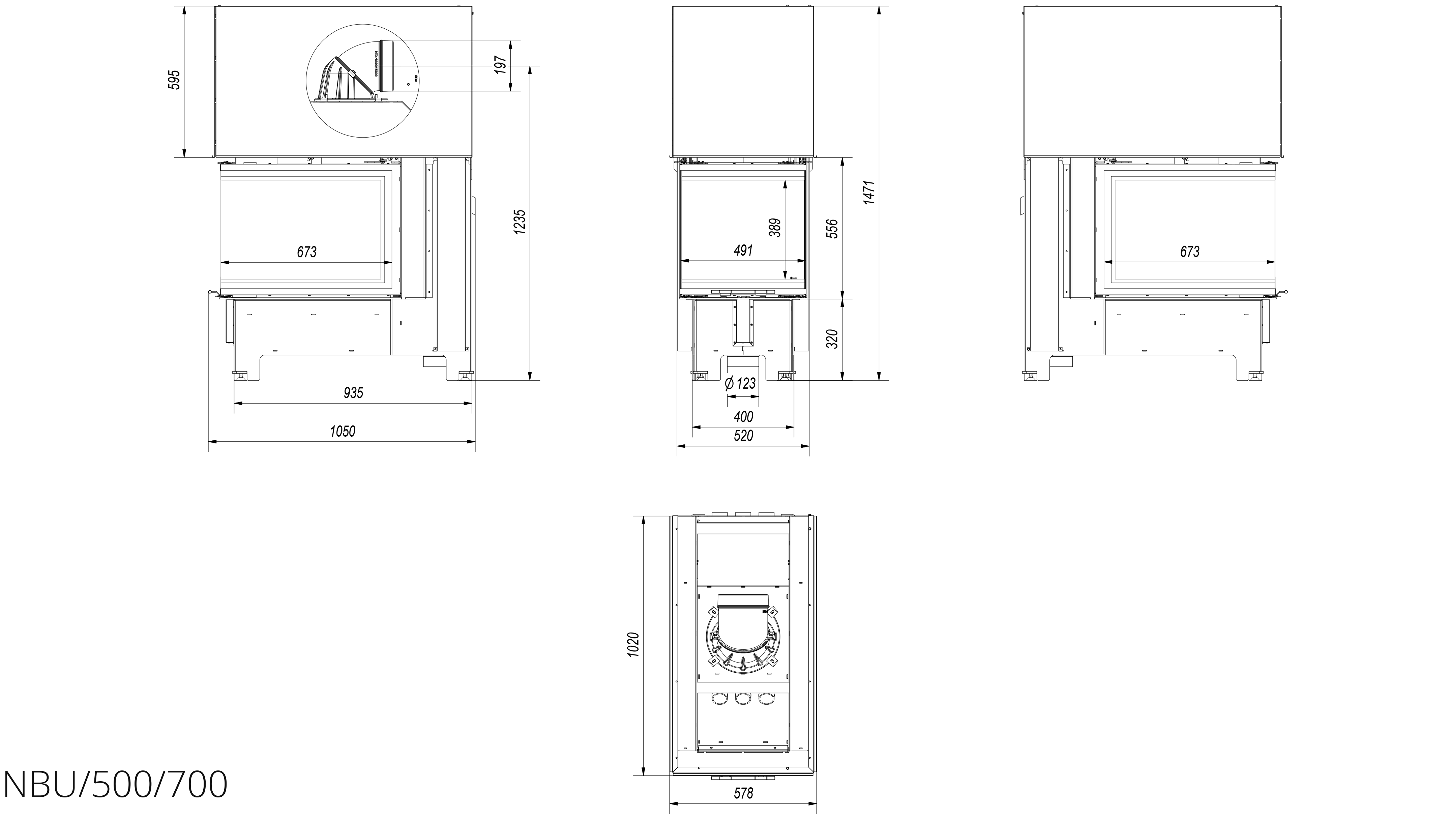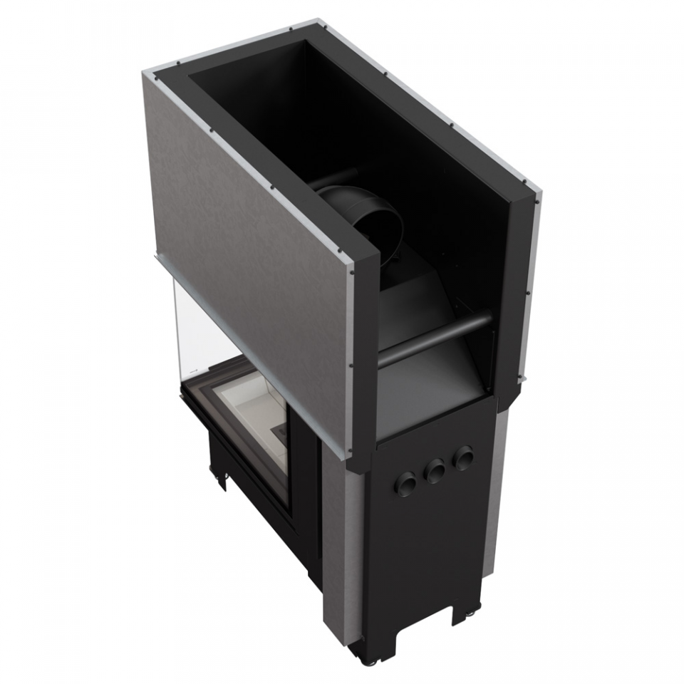 Focar de otel cu grosimea peretelui de 4 mm, captusit cu samota, echipat cu geam ceramic refractar 800°C.