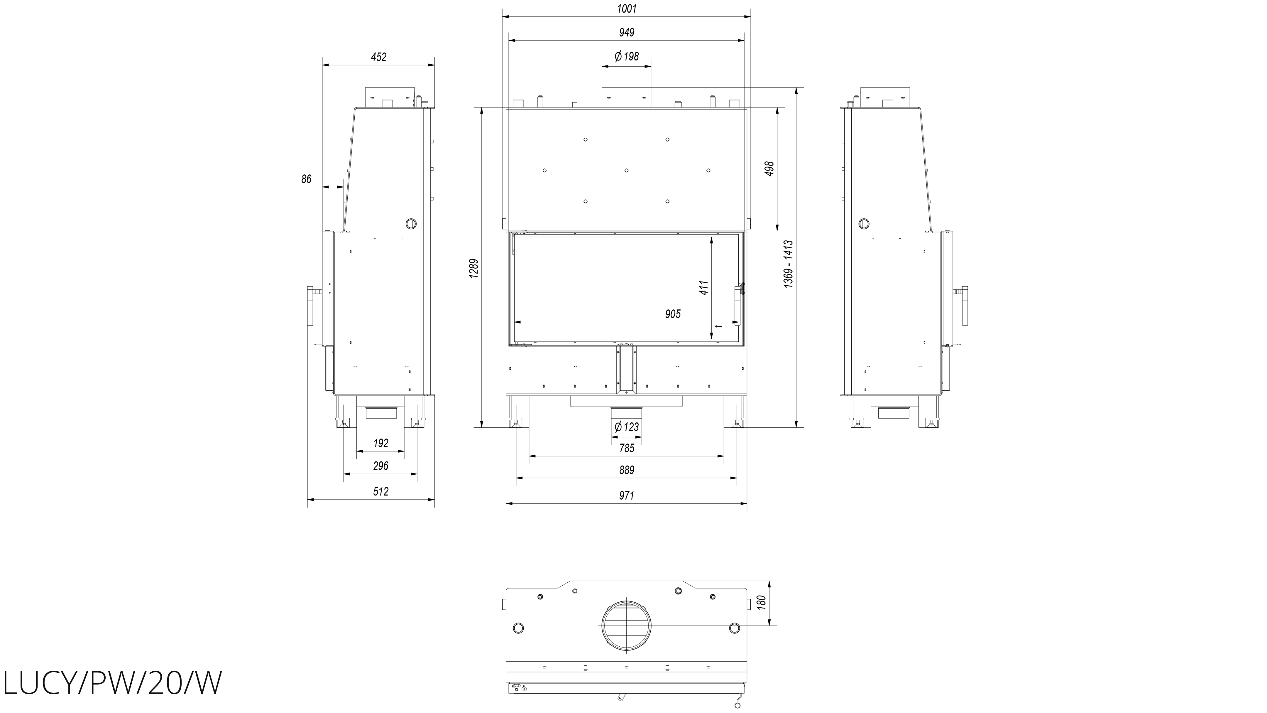 Semineu tip centrala cu focar de otel cu grosimea peretelui de 4 mm (taiat cu masini CNC-laser),captusit cu samota, echipat cu geam ceramic refractar 800°C.