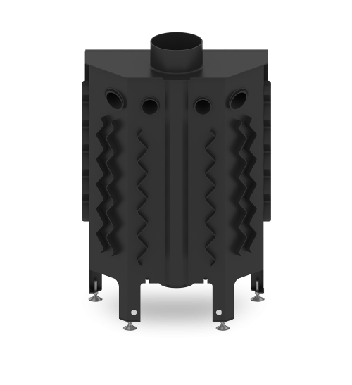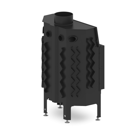 Focar din otel cu grosimea peretelui de 3 mm, captusit cu samota, echipat cu geam ceramic refractar 800°C, conceput pentru a functiona la temperaturi ridicate.