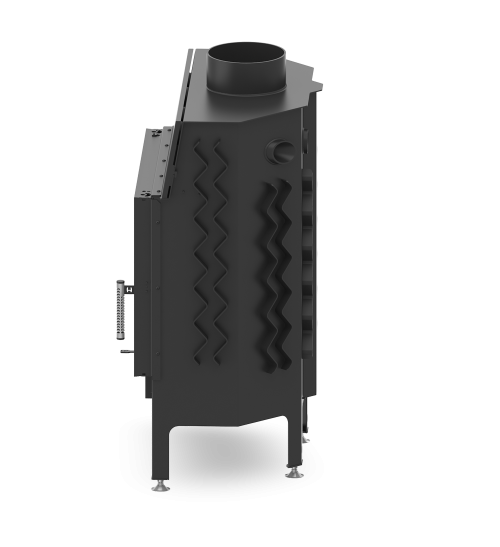 Focar din otel cu grosimea peretelui de 3 mm, captusit cu samota, echipat cu geam ceramic refractar 800°C, conceput pentru a functiona la temperaturi ridicate.