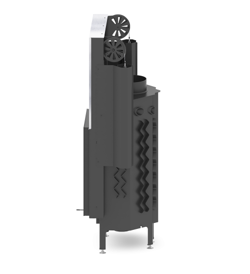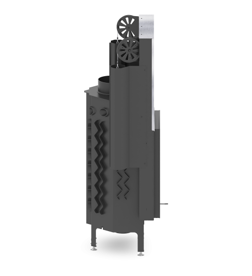 Focar din otel cu grosimea peretelui de 3 mm, captusit cu samota, echipat cu geam ceramic refractar 800°C, conceput pentru a functiona la temperaturi ridicate.