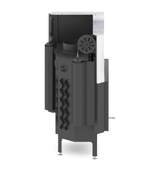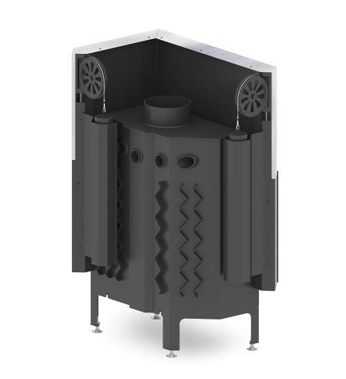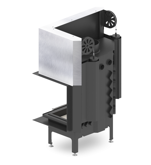 Focar din otel cu grosimea peretelui de 3 mm, captusit cu samota, echipat cu geam ceramic refractar 800°C, conceput pentru a functiona la temperaturi ridicate.