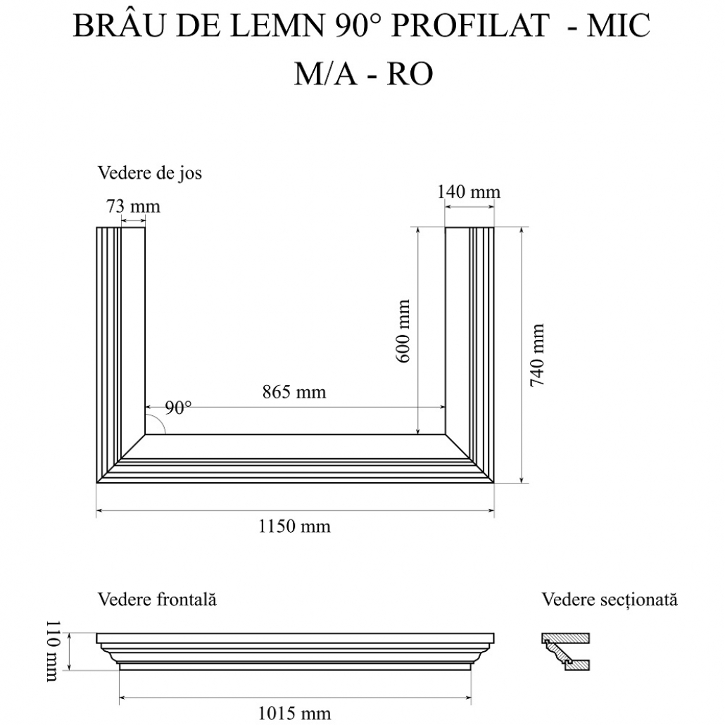 Brau de lemn 90gr. drept profilat -MIC