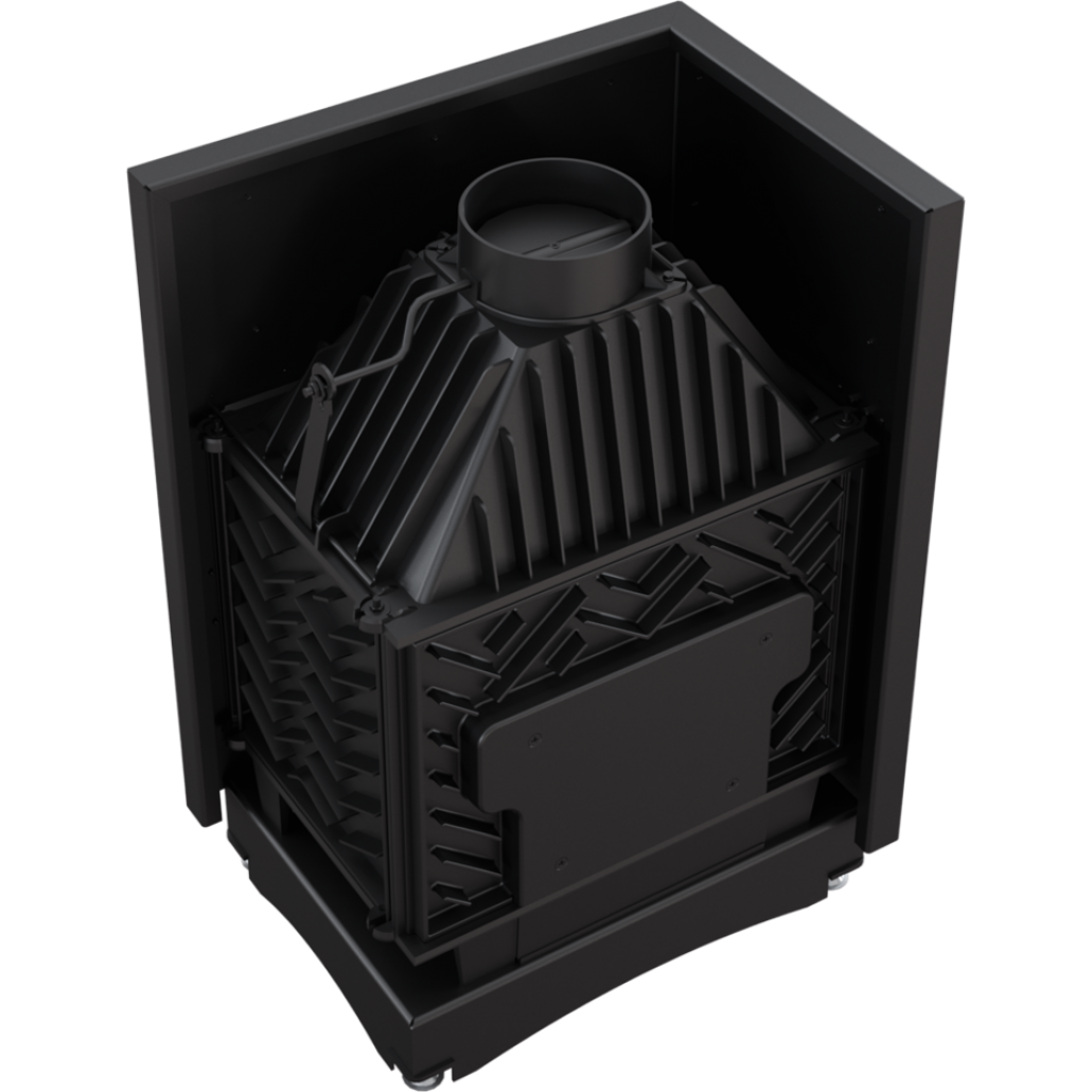 Focarul este din fonta turnata de minim 8mm cu sticla rezistenta la temperaturi de 800 de grade.