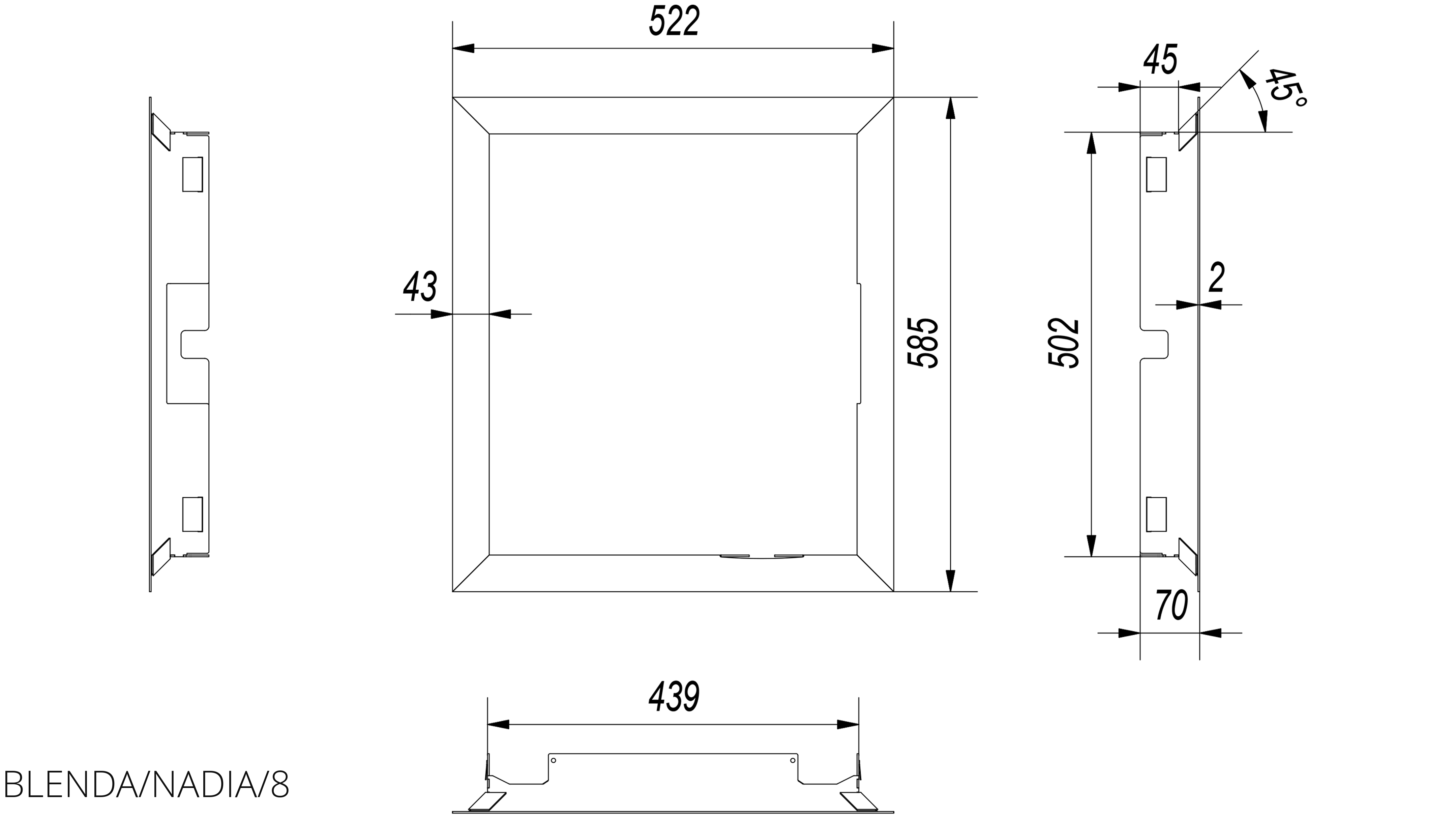 Rama de acoperire compusa din 2 unghiuri de 45 grade pentru focarul NADIA 8 kW maner stanga din otel 2mm, vopsita electrostatic cu rezistenta la zgarieturi.