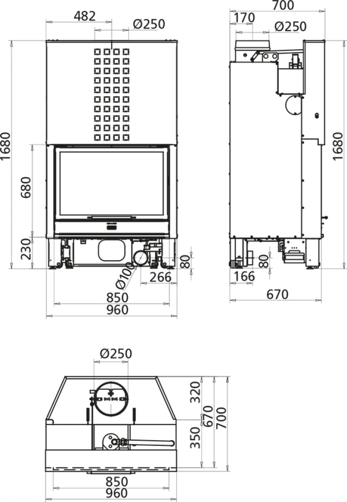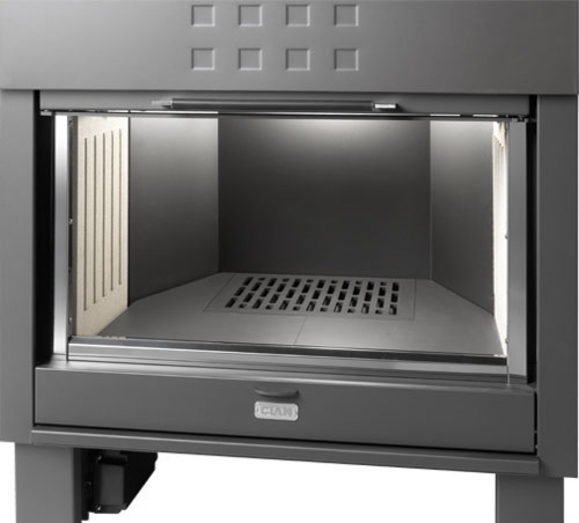 Semineu tip centrala cu focar de otel, captusit cu samota, echipat cu geam ceramic refractar 800°C.
