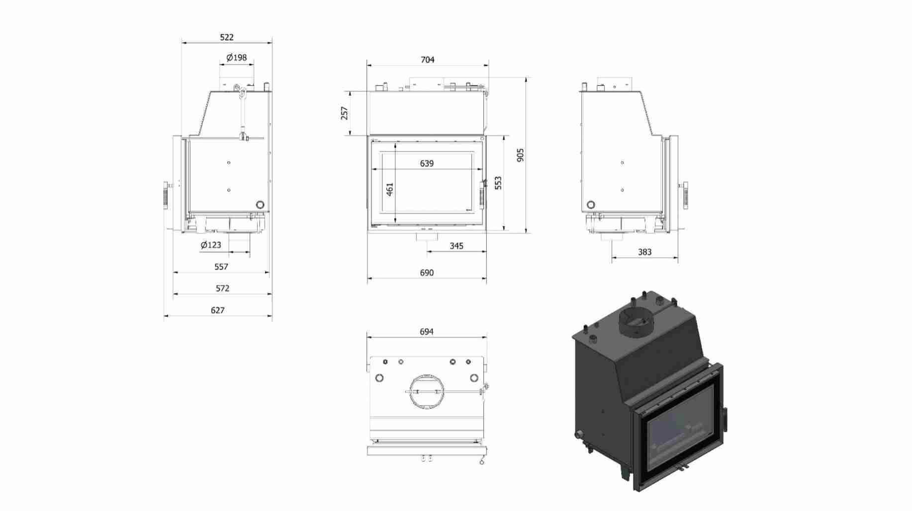 - Clapeta de tiraj pentru un consum scazut de lemne si penru a impedica suprasolicitarea focarului.