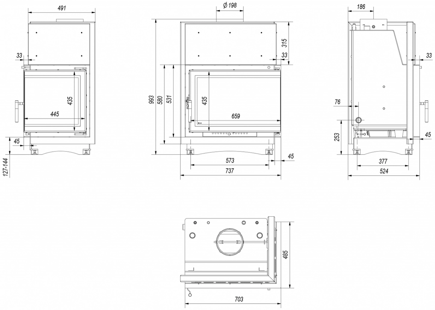 - Clapeta de tiraj pentru un consum scazut de lemne si penru a impedica suprasolicitarea focarului.
