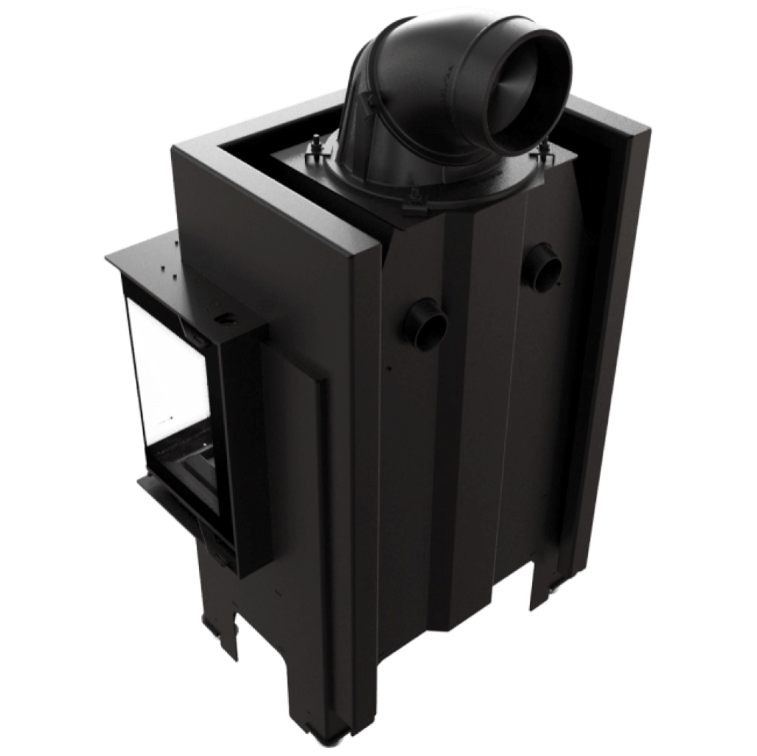 Focarul este echipat la nivelul conului cu sistem de recuperare a caldurii, compus din tevi orizontale ce preiau din caldura gazelor de evacuare, crescand eficienta acestuia. Focarul nu este pretentios in ceea ce priveste cosul de fum, avand evacuare cu diametru de dimensiune mai mica. Pe conul focarului este amplasata o evacuare reglabile la 360 grade, pentru a facilita racordarea acestuia la cosul de fum.