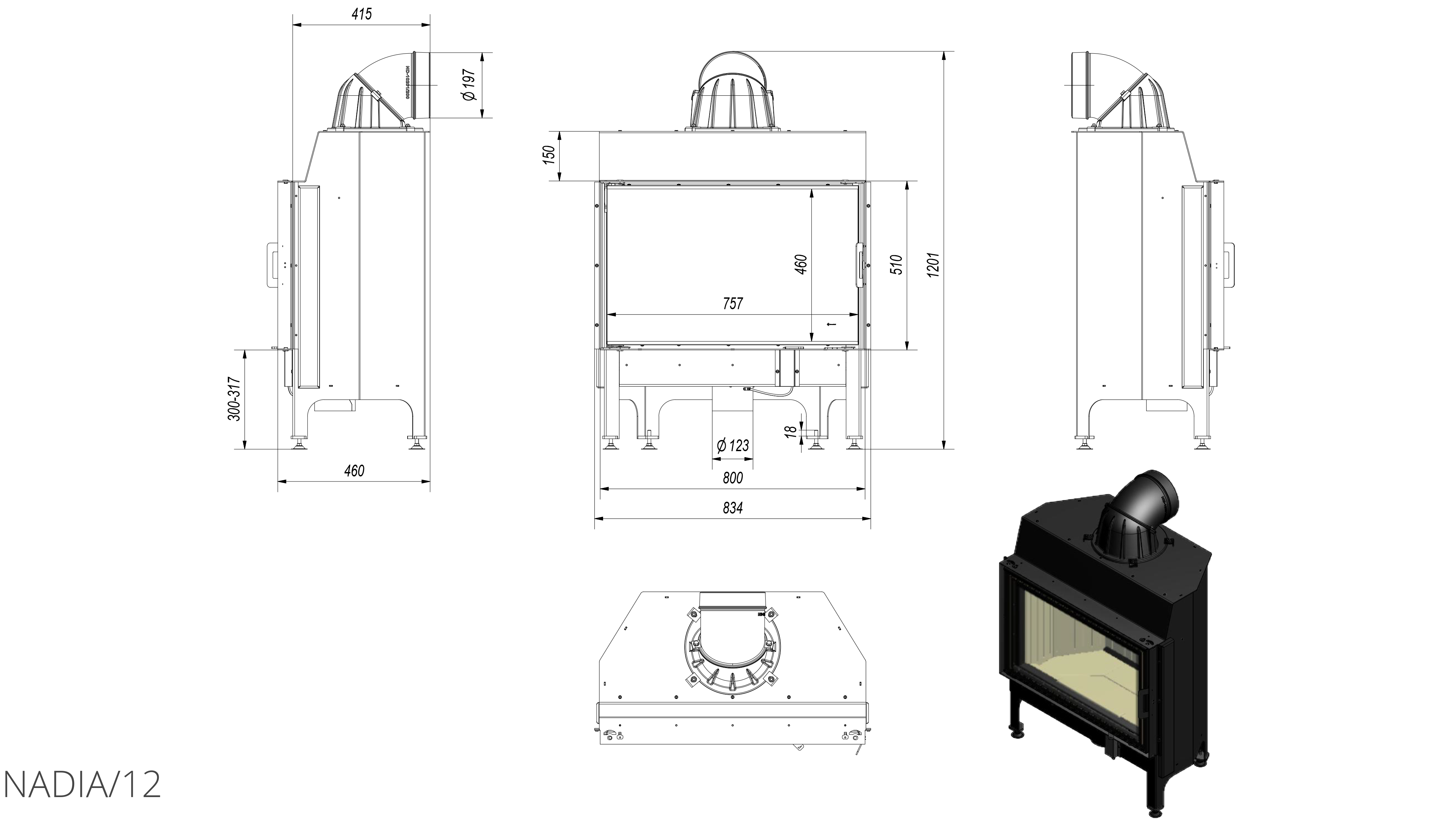 Focar de otel cu grosimea peretelui de 4 mm, captusit cu samota, echipat cu geam ceramic refractar 800°C.