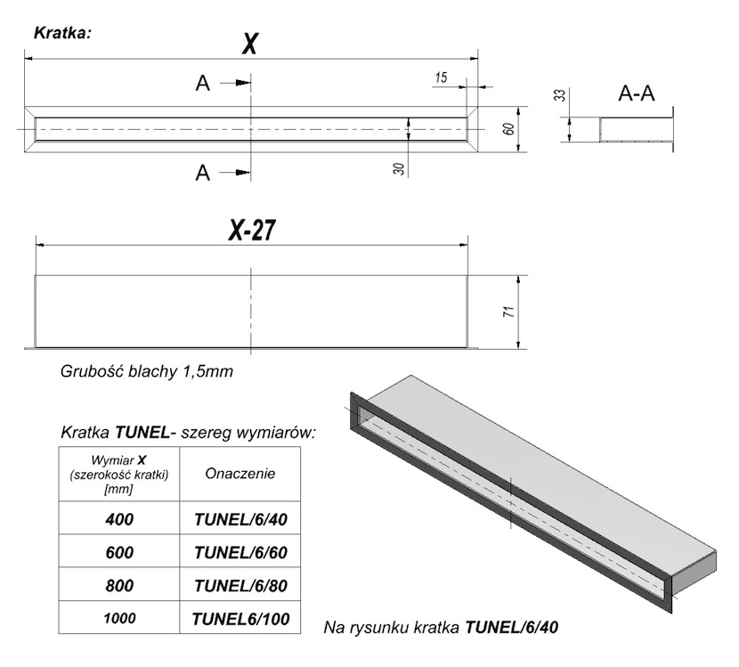 Grila TUNEL INOX 6/80