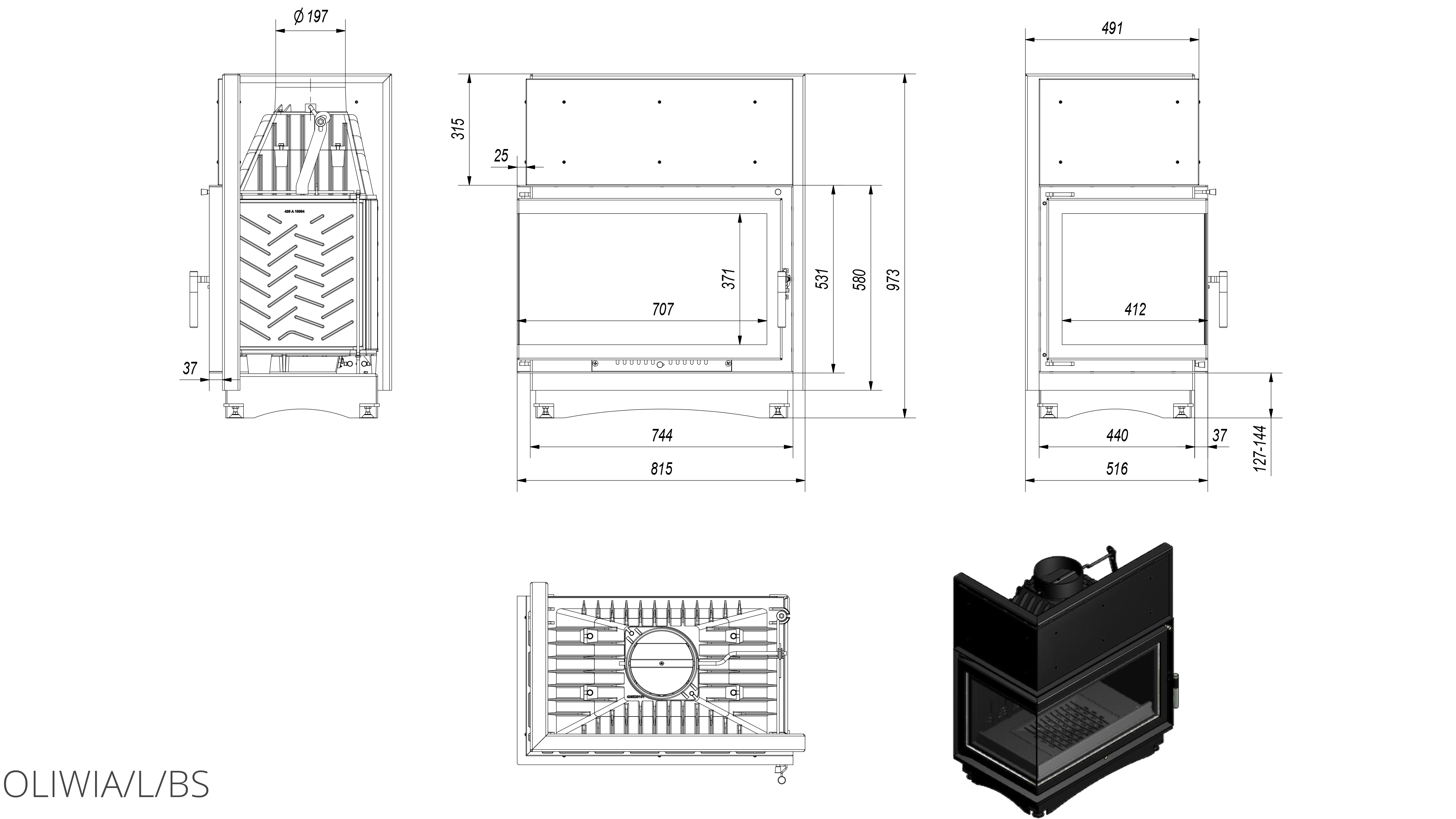 Detalii Tehnice despre Focar fonta Oliwia180 L/BS 16 kW sticla stanga